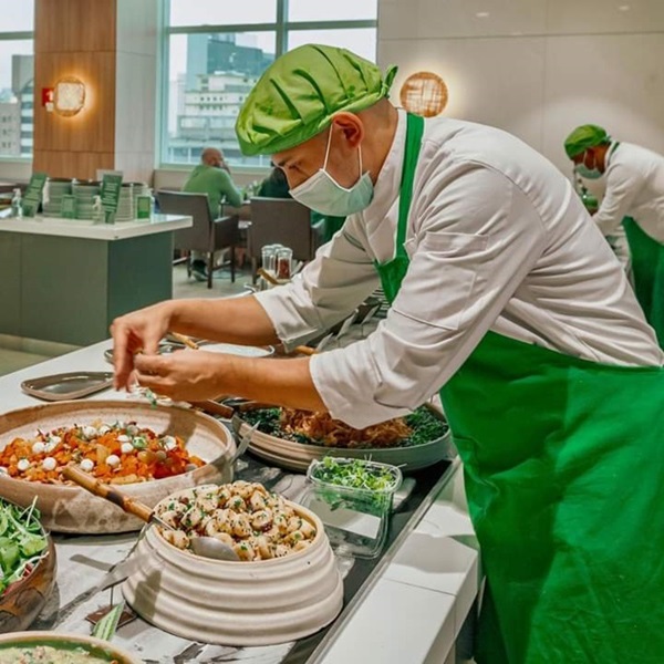 Canapés orgânicos, mini lanches, risotos ou massas, sobremesas sofisticadas e bebidas variadas.
