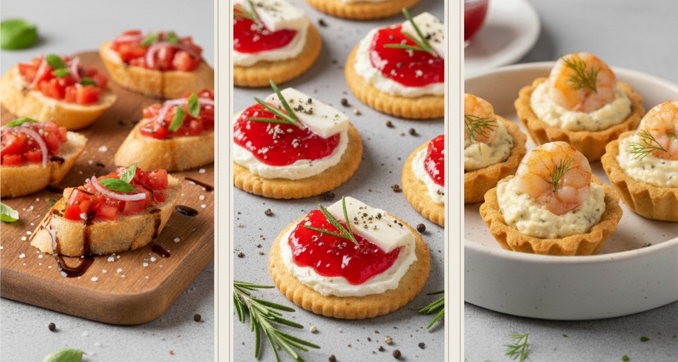 Mini sanduíche de pão de parmesão com salame italiano, cream cheese e geleia de damasco